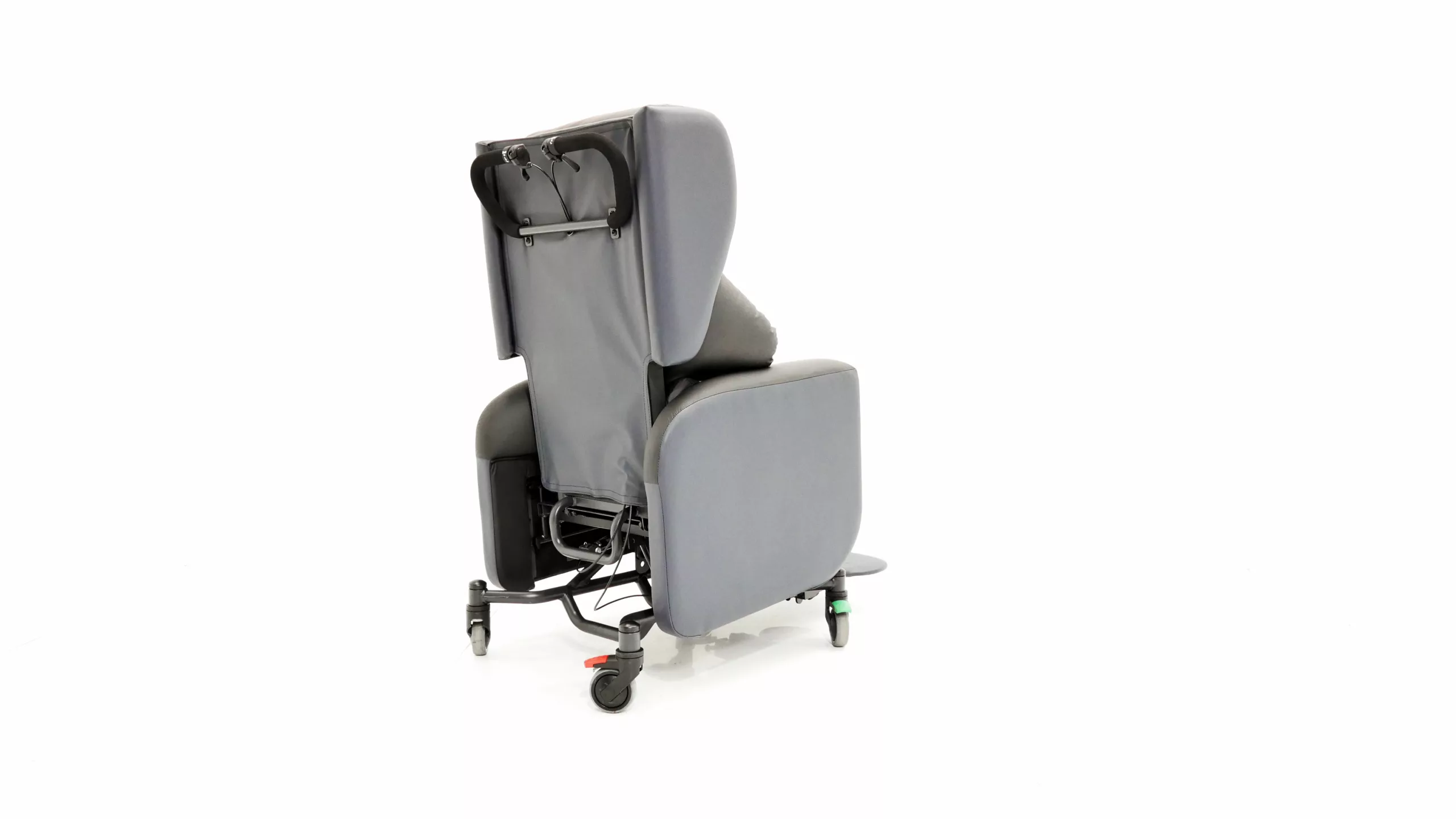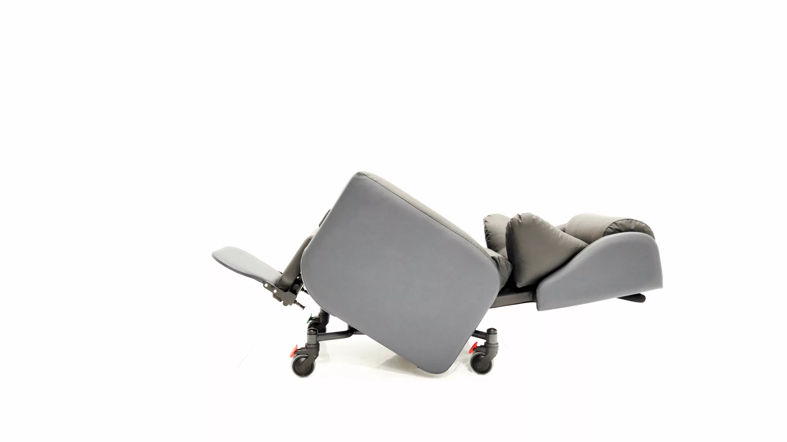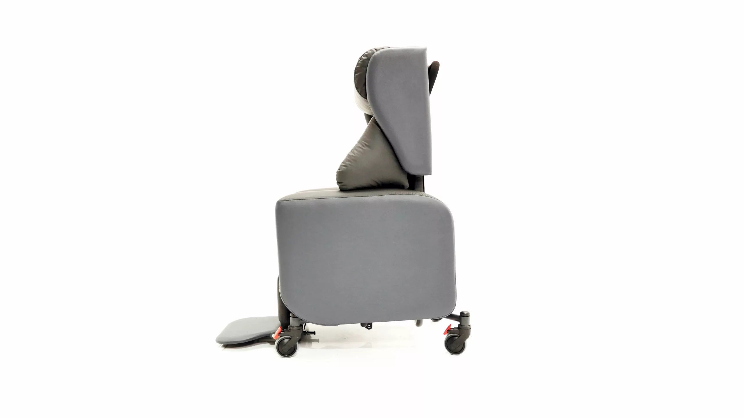 The Tri-Chair Two is a specialist seating solution designed for semi-ambulant and non-ambulant users requiring medium to high postural support. It features lateral support waterfall cushions to maintain a midline position, alongside Tilt-in-Space, independent back recline, and legrest elevation for effective pressure care management. Engineered for versatility, this lightweight, hoist-compatible chair includes directional lock castors and ergonomic handles for safe transit across clinical and home environments. It is specifically suited for patients with complex postures, unconventional body shapes, or neurological conditions such as stroke and brain injury.