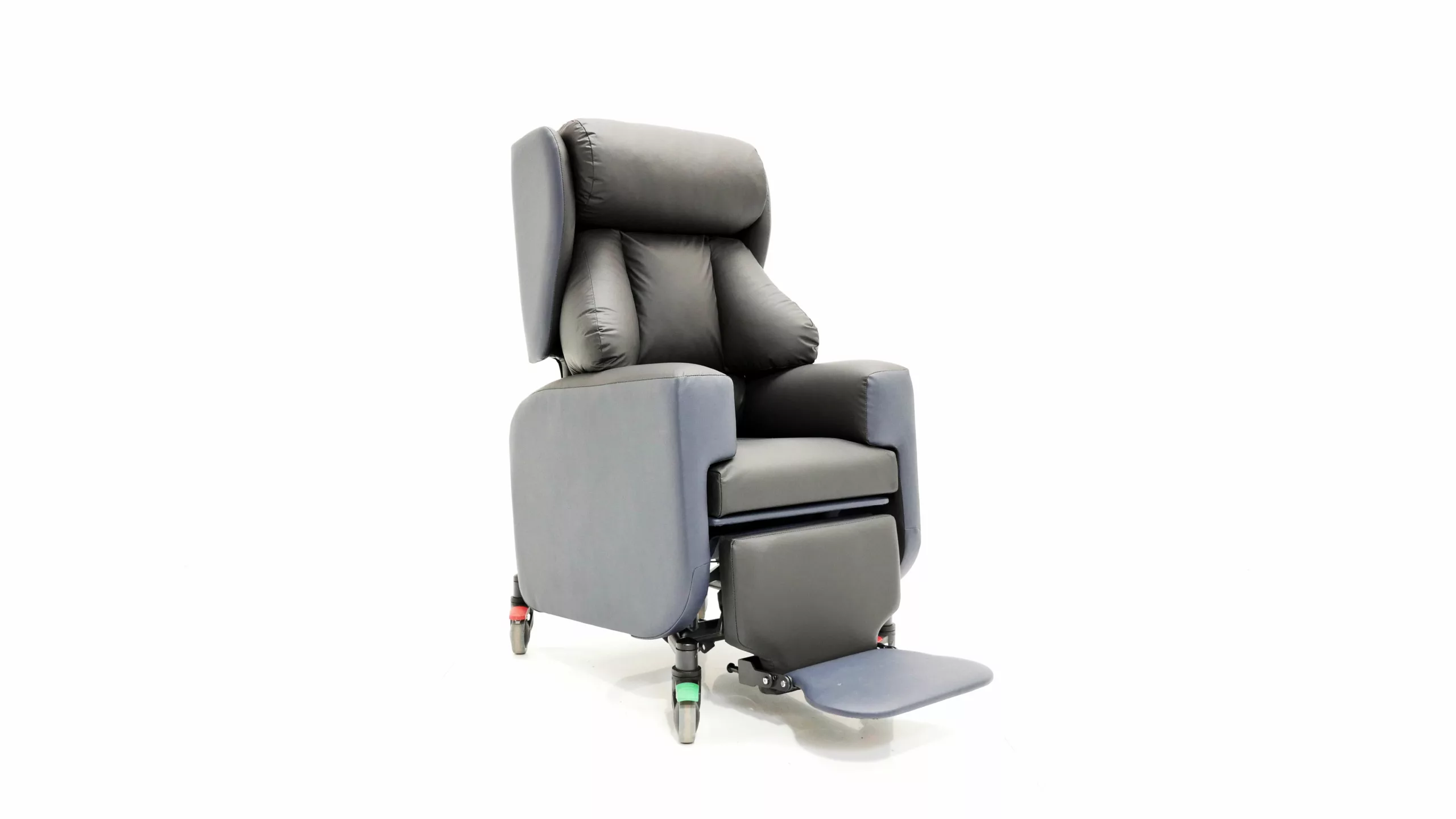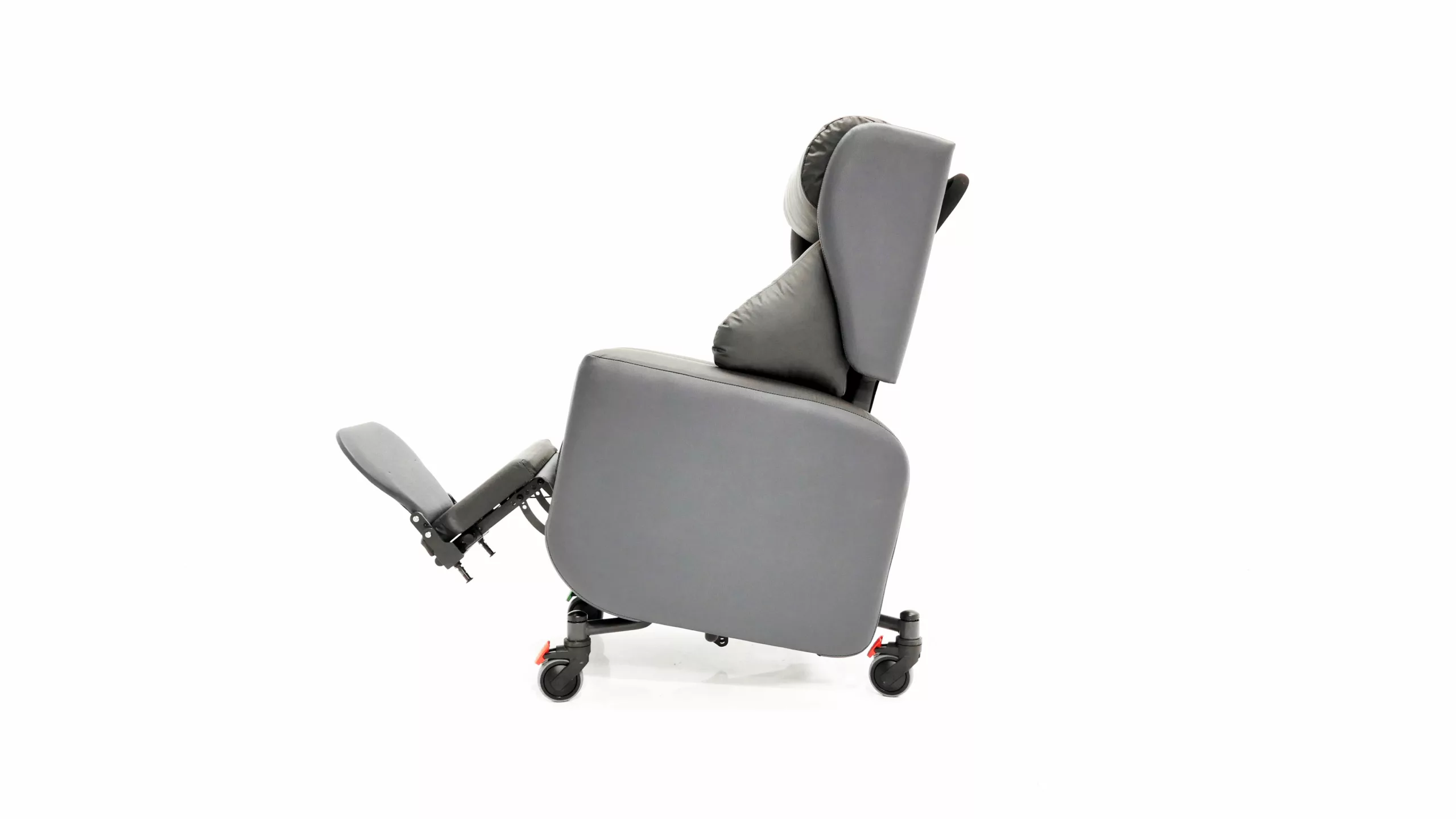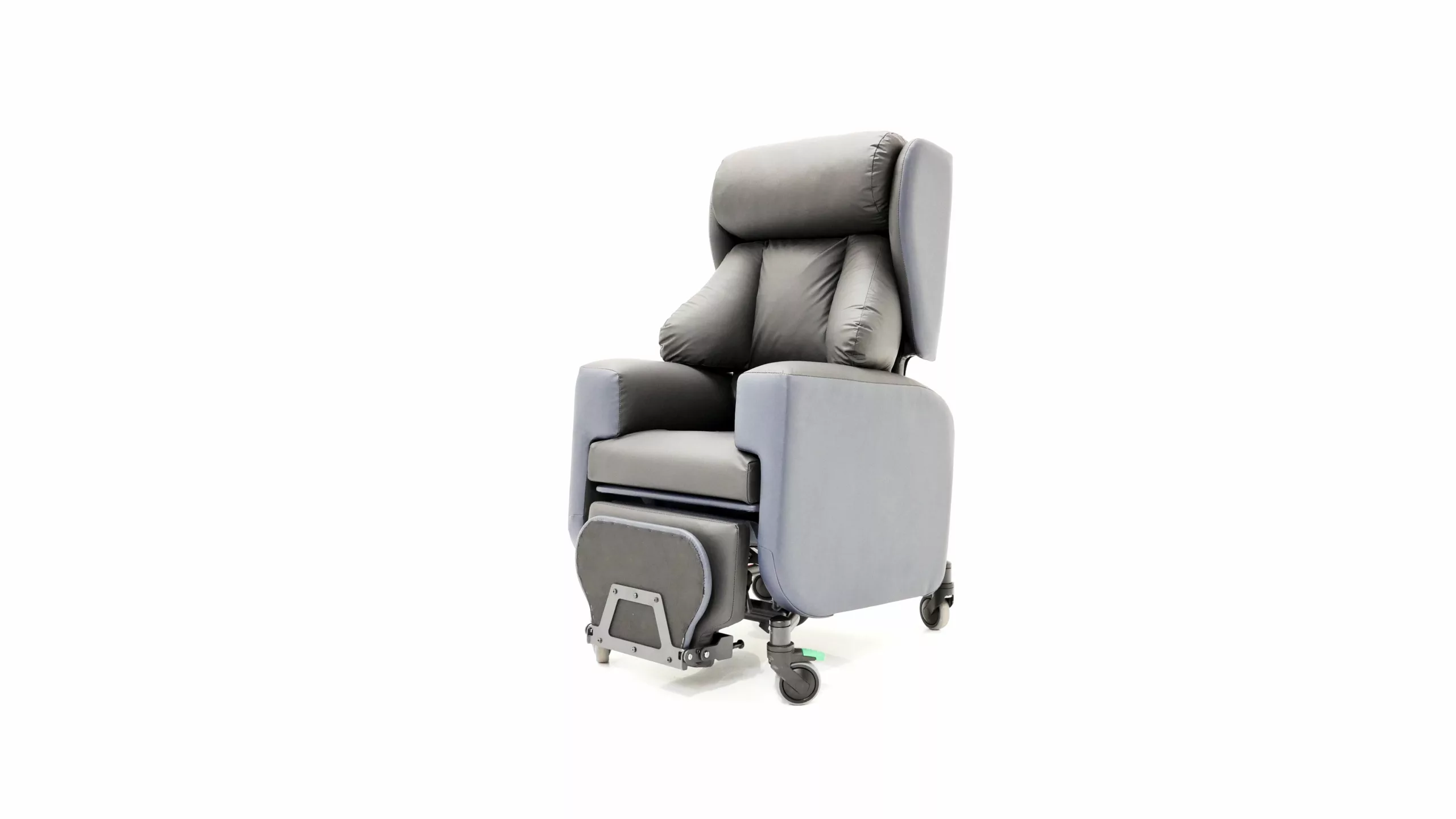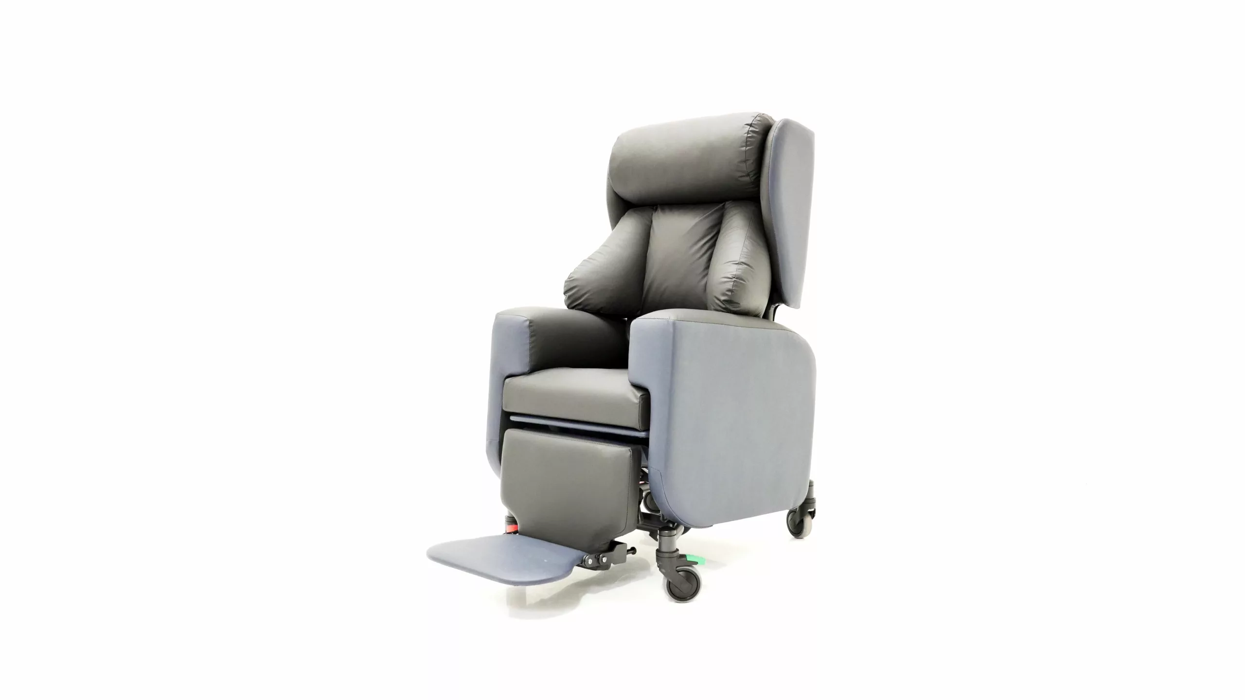 The Tri-Chair Two is a specialist seating solution designed for semi-ambulant and non-ambulant users requiring medium to high postural support. It features lateral support waterfall cushions to maintain a midline position, alongside Tilt-in-Space, independent back recline, and legrest elevation for effective pressure care management. Engineered for versatility, this lightweight, hoist-compatible chair includes directional lock castors and ergonomic handles for safe transit across clinical and home environments. It is specifically suited for patients with complex postures, unconventional body shapes, or neurological conditions such as stroke and brain injury.